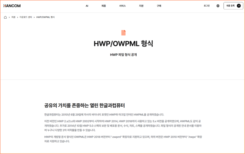 한컴은 HWP/HWPX의 파일 형식을 ‘한컴 지원센터‘에 공개하였고, 지속적으로 업데이트하고 있습니다.