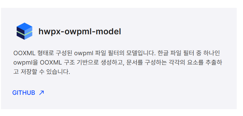 이러한 오해와 더불어, PDF나 DOCX 같은 글로벌 포맷에 비해 개발자들이 즉시 활용할 수 있는 오픈소스 생태계가 부족한 것이 현실입니다. 유의미한 프로젝트 수가 10개 내외로 매우 적고, 그 기능마저 단순 텍스트 추출에 국한되어 있습니다.