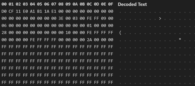 .doc 파일은 OLE2(Object Linking and Embedding 2.0)로 저장되어 있습니다. OLE2는 Microsoft가 만든 Compound File Binary Format입니다. 바이너리 파일 내부가 디렉터리/파일처럼 동작합니다.