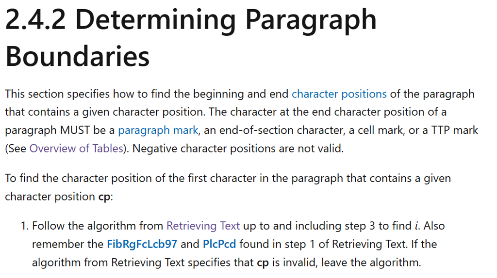 참고: MS-DOC 공식 명세, [MS-DOC]: Determining Paragraph Boundaries