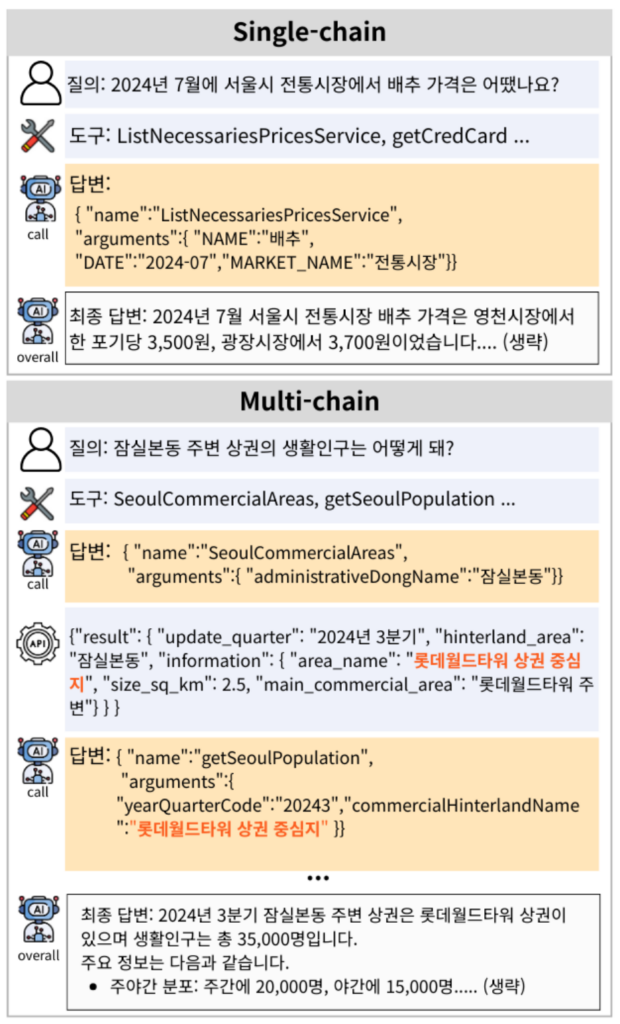 | Multi-chain | 여러 도구를 순차적으로 사용하는 연쇄 호출 |